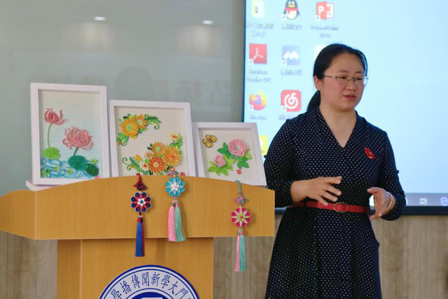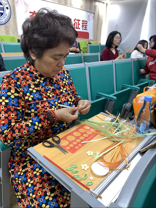 传统民间艺术——衍纸文化包罗万象,给带来大家无穷的想象空间和创作的自信,新闻传播学院学院邀请了当代纸艺文化专家陈宝珍老师讲授衍纸创意艺术。党旗制作创意点亮了活动主题。