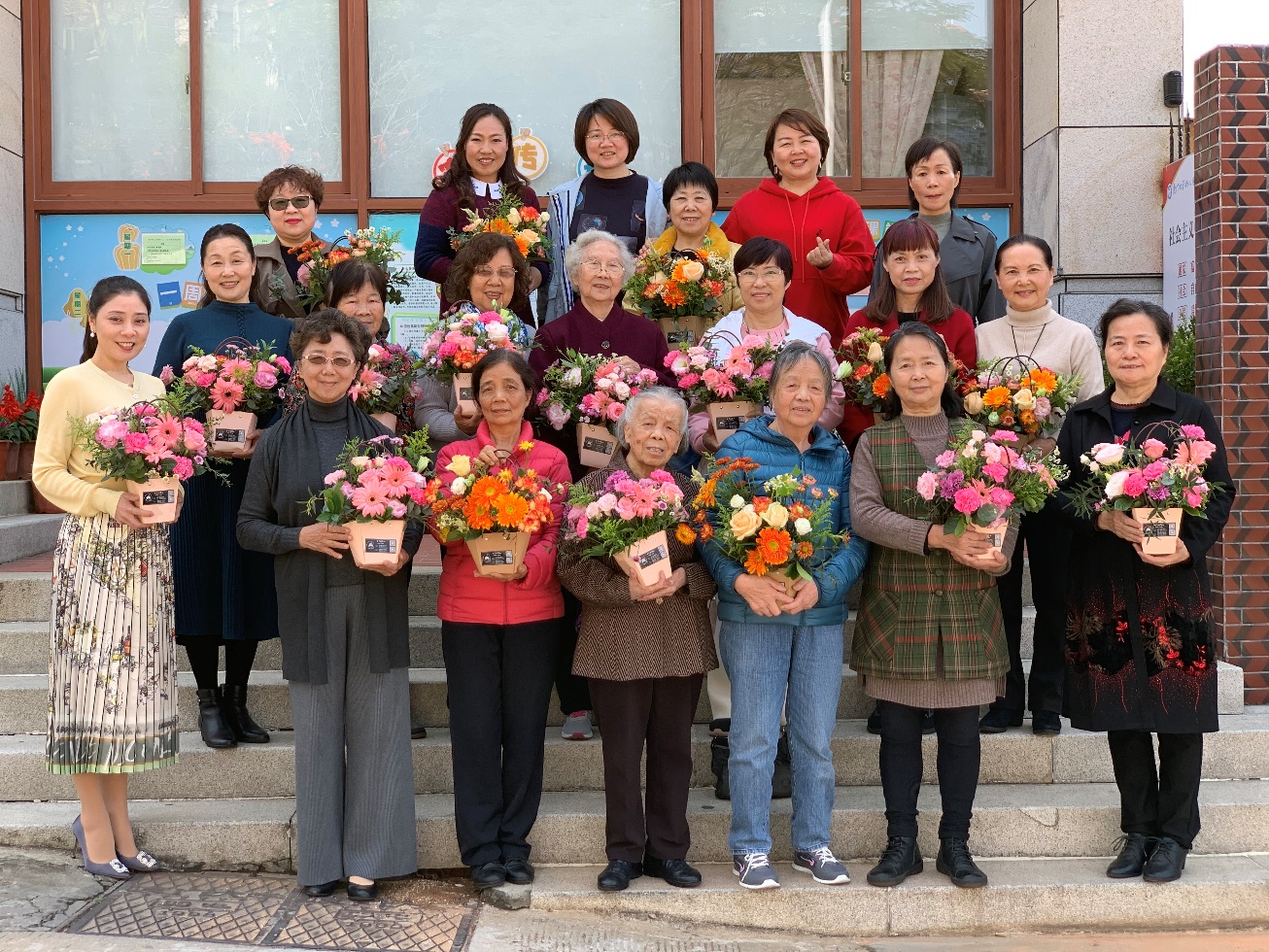 厦大幼儿园离退休教师与在职人员一起参加插花活动