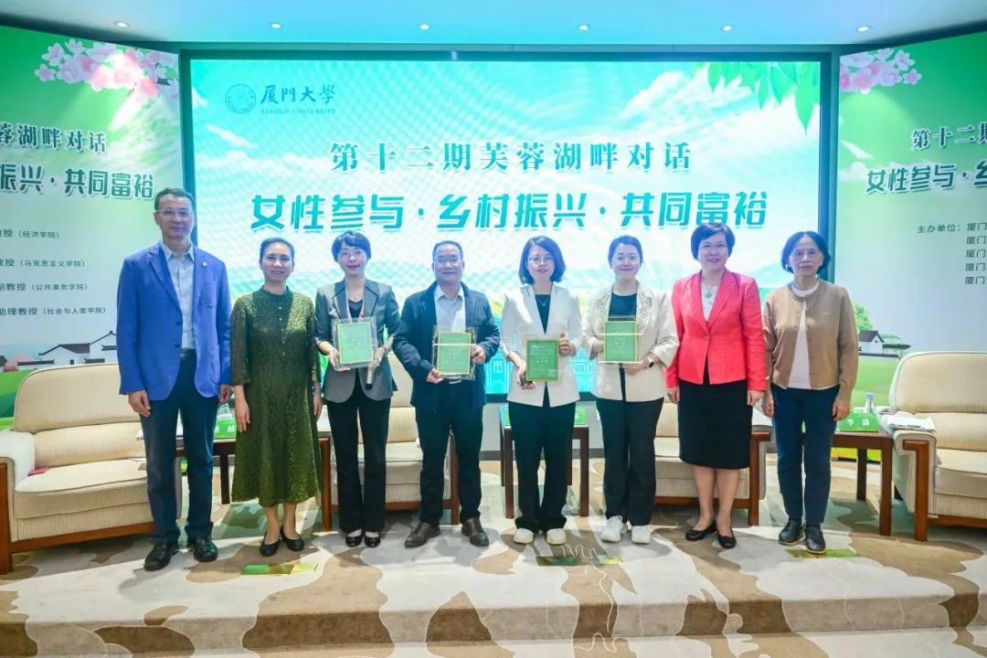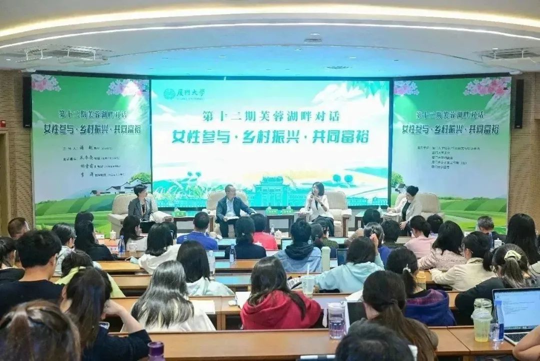 为更好地推动性别平等发展,激励广大妇女在全面推进乡村振兴中充分发挥自身优势和积极作用,11月22日晚,以“女性参与·乡村振兴·共同富裕”为主题的第十二期芙蓉湖畔对话在厦门大学克立楼报告厅顺利举行,讨论乡村振兴中的“她”力量。本期芙蓉湖畔对话由厦门大学妇女/性别研究与培训基地、厦门大学工会、厦门大学妇委会、厦门大学学生部(处)、厦门大学团委联合主办。厦门市妇女联合会党组书记、主席庄海英,厦门大学党委常委、副校长、校工会主席、厦门大学妇女/性别研究与培训基地主任邓朝晖,原校党委副书记陈力文、赖虹凯等领导和200余名师生一起参加了现场活动。