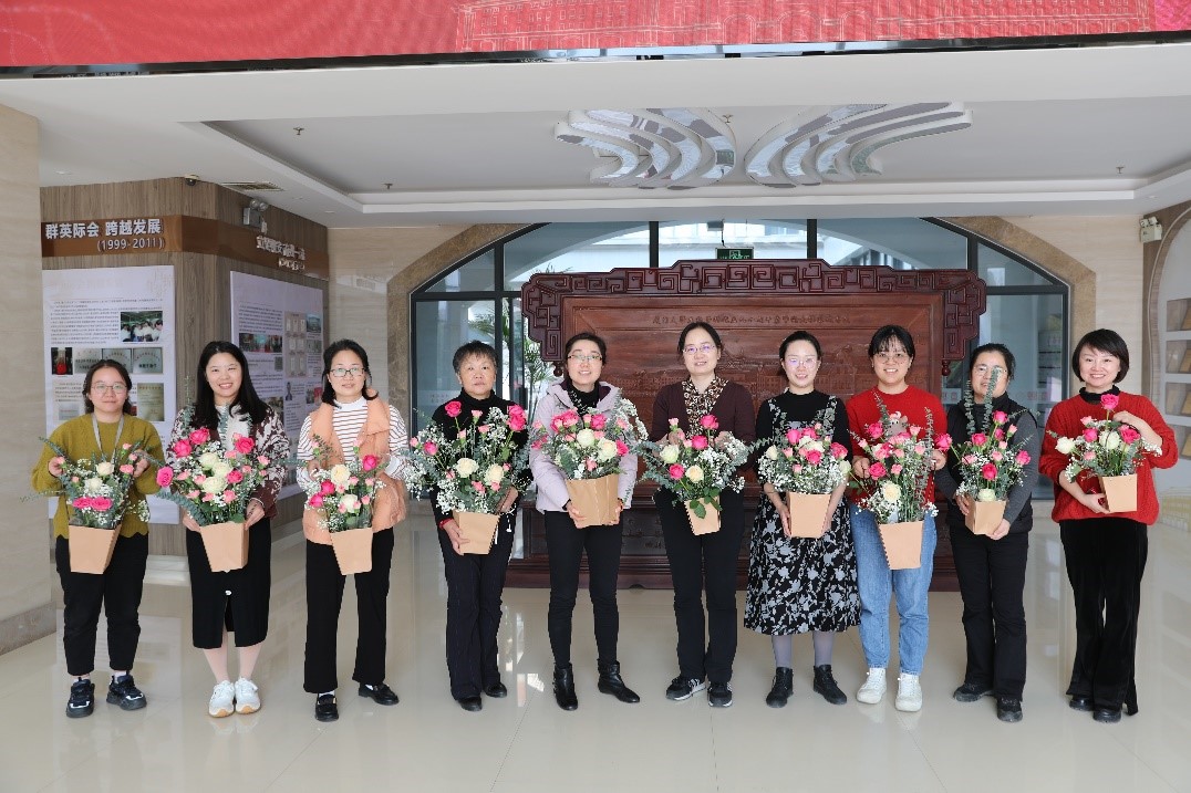 活动最后,老师们手捧各自的插花作品一同合影留念,记录下这美好的时刻。阳光和煦、花香馥郁,女老师们在繁忙的工作之余享受插花带来的乐趣,在享受花艺魅力的同时,陶冶情操,释放压力。这次活动不仅增进了同事之间的交流互动,更营造了和谐温馨的学院氛围。