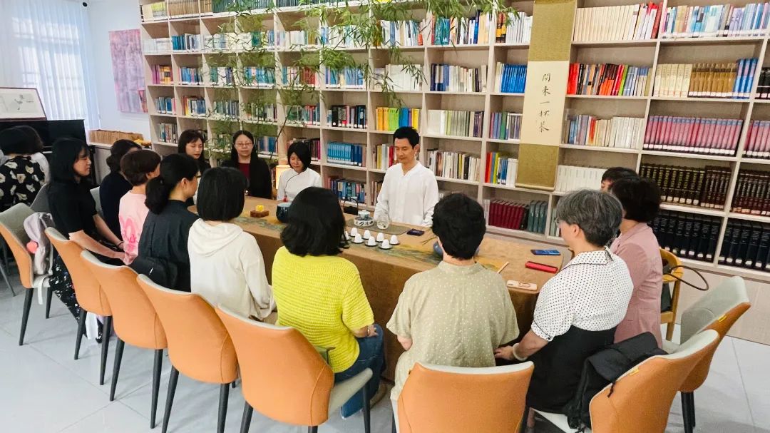 细品清茗心自静,阳春三月茶香浓。外文学院妇委会于4月17日下午在南光三“外文之家”组织开展“静茶七式,体悟人生”活动,邀请专业的茶艺师团队,从心法和技法层面向老师们展示茶道文化,指导老师们如何泡好一杯茶。在步入活动现场前,每位老师都进行了净手仪式。这是茶道文化中一个富有象征意义的环节,不仅关乎清洁与卫生,更有着净手、净心、敬重与和谐的深层意味。在轻柔舒缓的音乐中,老师们跟随茶艺。在这个过程中,老师们仿佛进行了一场心灵的洗礼,将外界的纷扰暂时抛诸脑后,与茶建立起奇妙的联系,彼此交融,相互感应。老师们纷纷发表体会和感悟:这次活动让大家领略了茶道文化的独特魅力,是一种生活美学,也是一种人生哲学,茶道教会我们尊重与敬畏,分享与和谐,教会我们找寻内心的平静与安宁。