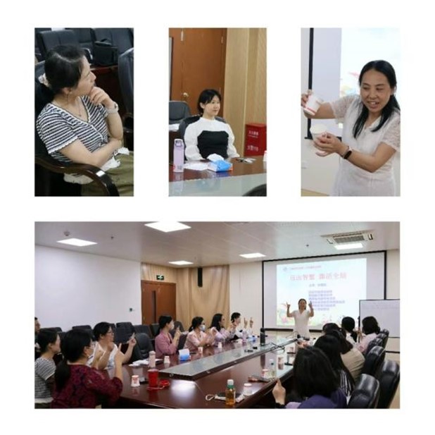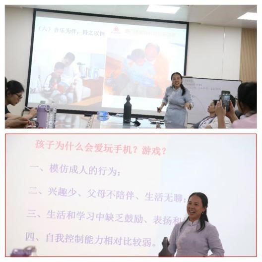 本次系列活动以孩子不同成长阶段面临的问题为出发点,精心策划了“统感失调的危害与预防”、“玩出智慧、激活全脑”、“让孩子放下手机,爱上阅读”以及“青春期心理健康塑造”四大主题。在轻松愉悦的氛围中,主讲老师钟雪珍通过富有趣味性的游戏和运动与女教工们迅速拉近了距离,巧妙地将话题引入讲座内容。她指出父母作为孩子最初的教育者,其家庭教育方式对孩子的成长具有深远的影响。