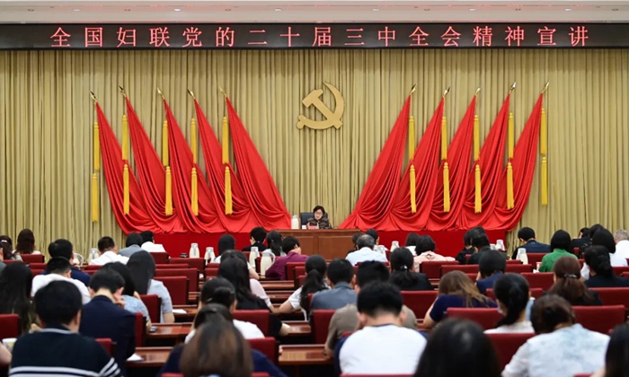 近日,全国妇联举办学习贯彻党的二十届三中全会精神宣讲会,全国妇联党组书记、副主席、书记处第一书记黄晓薇作宣讲。她强调,要认真贯彻落实习近平总书记就中央和国家机关学习贯彻全会精神、推动机关党建高质量发展作出的重要指示,把学习好贯彻好全会精神作为重大政治任务,把牢政治方向,立足妇联职能,狠抓改革落实,切实在学习宣传贯彻全会精神上当好排头兵,在进一步全面深化改革、推进中国式现代化上走在前、作示范。