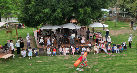 讲座期间,孩子们也在丰富多彩的自然活动中收获快乐与成长:在萌宠区与羊驼、小鹿亲密互动,在草地上奔跑嬉戏,在游戏区尽情玩耍,在轻松愉悦中感受责任与关爱,亲近自然,快乐成长。