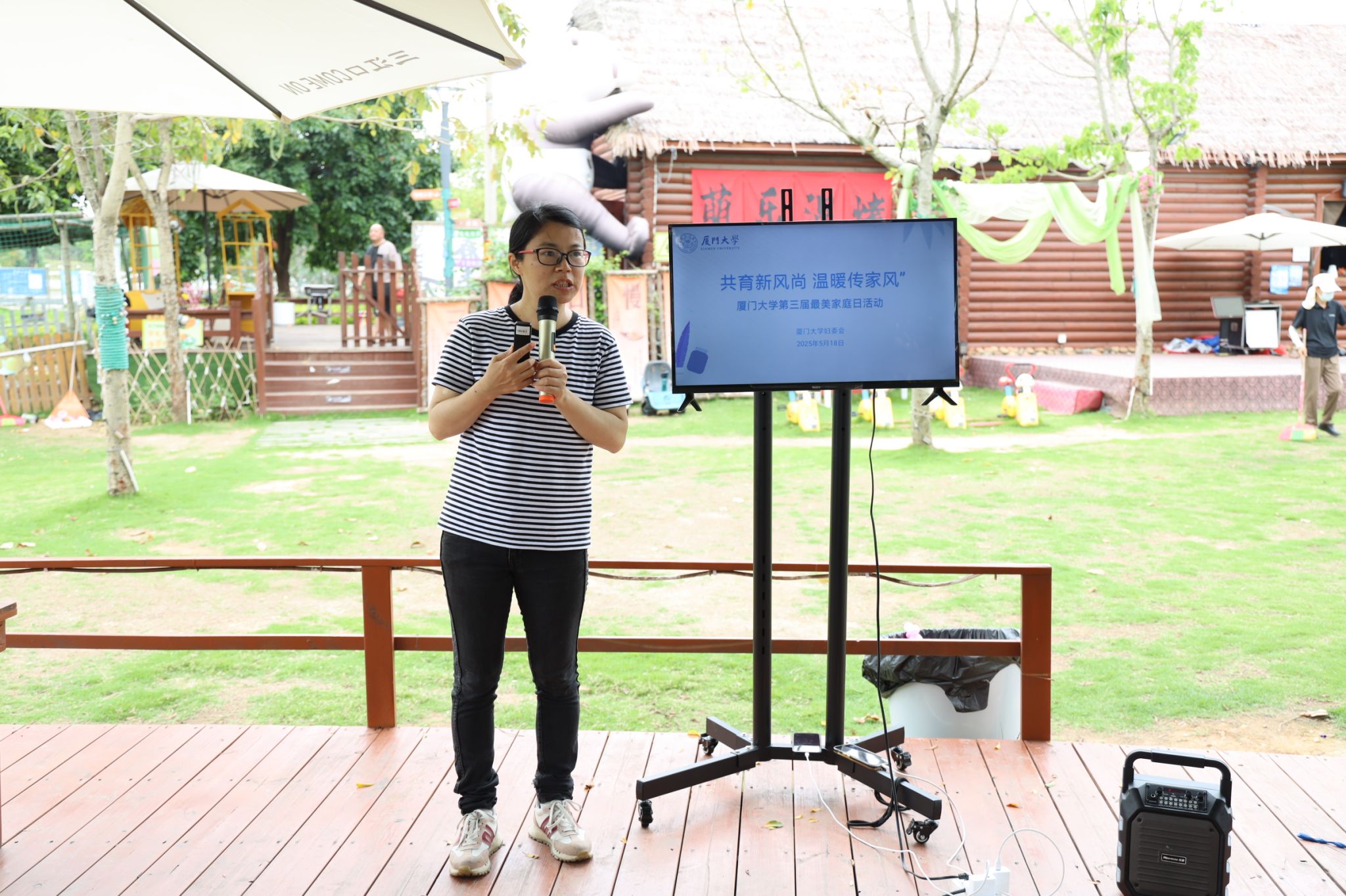 5月18日上午,厦门大学“共育新风尚 温暖传家风”第三届家庭日活动在三江口·温泉水岸露营基地成功举办。来自全校25组教职工家庭的70余人欢聚一堂,在专家讲座、亲子互动等丰富多样的活动中,共同探索科学育儿之道,传承优良家风。活动由校妇委会主任、校工会副主席陈小芬主持。