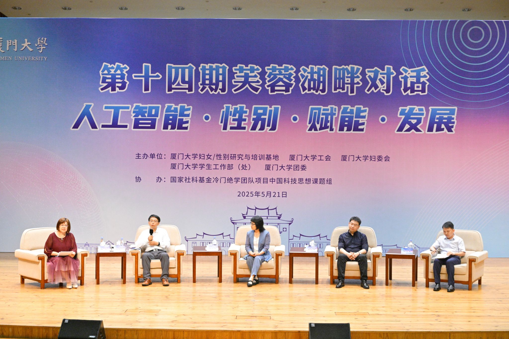 5月21日晚,以“人工智能·性别·赋能·发展”为主题的第十四期芙蓉湖畔对话在厦门大学科学艺术中心二楼音乐厅顺利举行。厦门大学校务委员会副主任、校友总会副理事长、校关工委常务副主任赖虹凯,厦门大学校务委员会副主任、校妇女/性别研究与培训基地主任、老年大学校长邓朝晖,厦门大学校长助理、科技处处长纪荣嵘、部分机关部处负责人和来自不同学院的师生代表共400余人参与了对话现场活动。本期对话旨在以跨学科交流推动技术向善,为智能时代性别平等与女性高质量发展注入新动能。