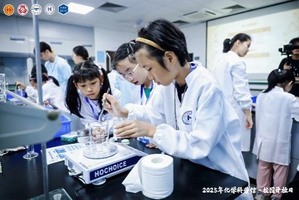 接下来是实践探索环节。在蓝晒印相小组,小朋友们用阳光作画,体验古典摄影工艺中的化学显影奥秘;在分子料理爆爆珠小组,家长和小朋友们一起亲手制作“舌尖上的科学”,感受海藻酸钠凝胶与乳酸钙溶液碰撞出魔法般的离子交舞;在膏泽酯香小组,小朋友们通过称量、加热、混合、乳化,见证从互不相容到完美融合的神奇转变。在结绳探构小组,将传统手工艺与化学分子结构结合,小朋友们通过编织感受科学与文化的双重魅力。