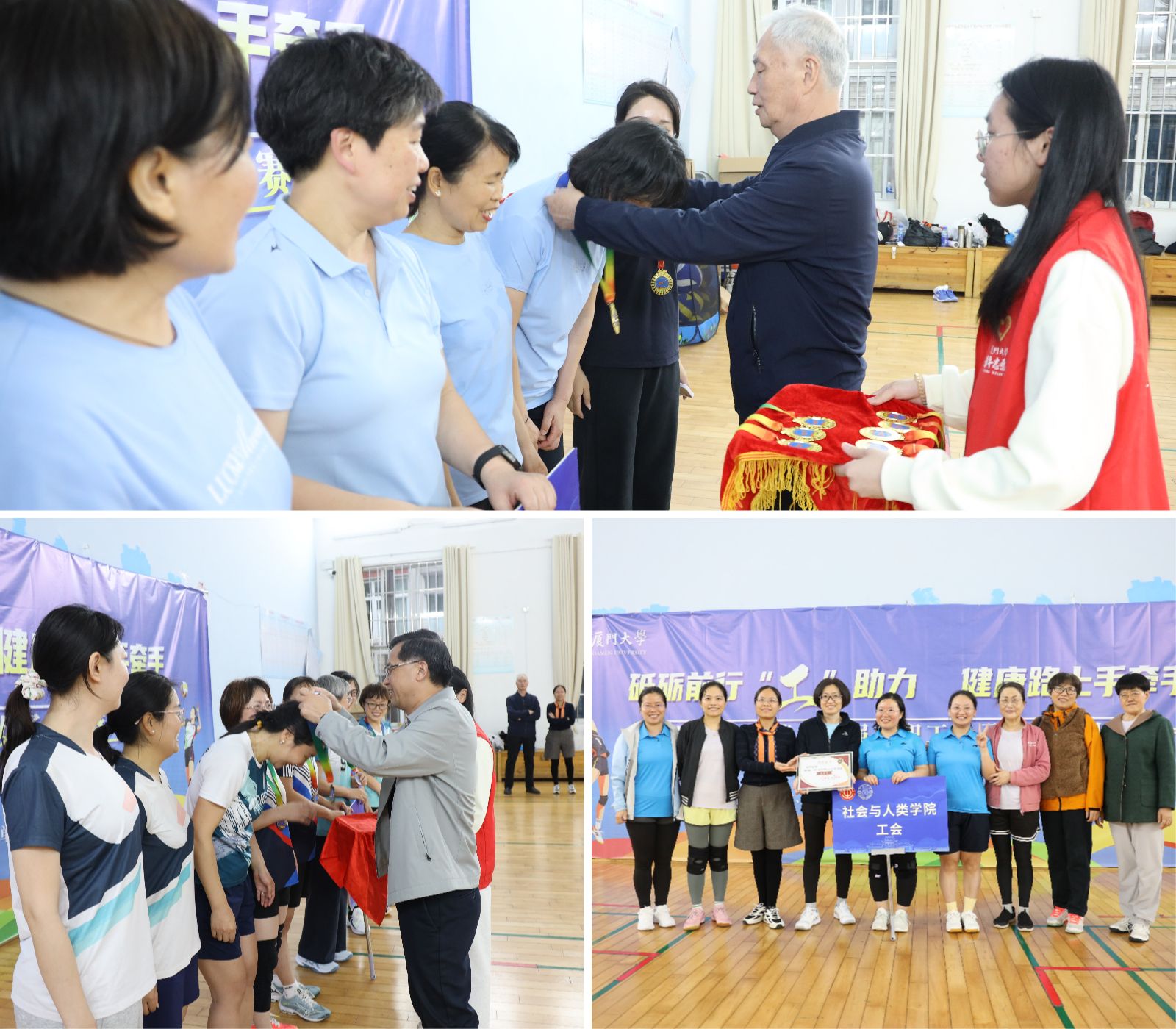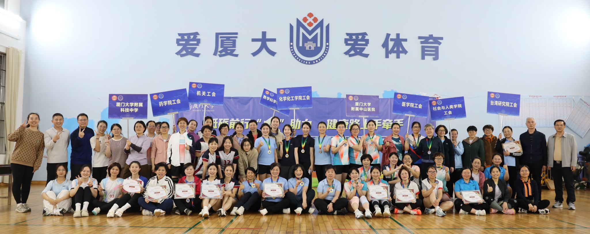 为深入学习贯彻党的二十届四中全会精神、习近平总书记关于全民健身、健康中国的重要论述和中国工会十八大精神,结合“三八”国际劳动妇女节116周年和厦门大学建校105周年,3月28日,由校工会、校妇委会主办,校教职工气排球协会承办的厦门大学第十四届教职工女子气排球比赛在思明校区风雨球馆顺利举办。