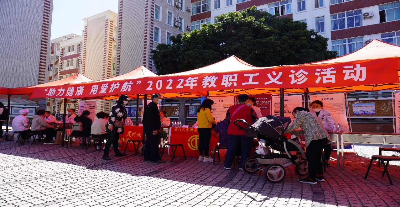 3月8日上午,在思明校区三家村广场举行的“助力健康,用爱护航”教职工义诊活动,吸引了来自各学院的师生参加。义诊现场,来自附属翔安医院皮肤科主任医师单士军、骨科主任医师姜小华等在内的22专家、14个科室的医护人员,根据各自的专业特长,耐心接待每一位教职工,他们详细询问病情、查看检查报告,对疑问细心解答,并给予诊治建议。现场还提供免费测血糖、量血压、普及中医知识,养生保健等服务。