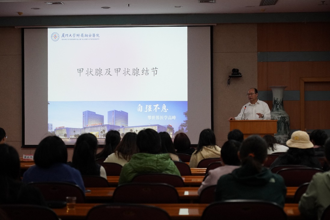 3月7日晚,校附属翔安医院执行院长、校医院院长、甲状腺与乳腺领域的主任医师张国君教授在颂恩楼220会议室,为大家带来《甲状腺与乳腺健康知识》的讲座,张院长从让大家了解乳腺癌、乳腺常用的临床检查方法、乳腺癌常用的治疗方法、乳腺癌的十大误区、常见的甲状腺疾病、甲状腺疾病的常用检查和治疗手段等方面为大家进行了深入浅出的辅导,讲座深深地吸引了在座的老师,现场提问咨询,现场病例诊断,讲座受到大家的一致好评。许多教职工纷纷表示受益匪浅,深感应加强自我保健、自我检查的重要性。