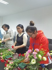 本次插花活动分两组进行,活动开始后,在插花老师的指导下,医学院女教职工代表们暂时放下生活和工作的压力,专注悉心的各自展开创作,体验着瓶式插花和简易桌花中蕴含的艺术美学,品味着插花艺术的优雅与美好。美丽的花朵被赋予了不同的意义,怀着爱、感恩、期待及对新一年美好生活的希望与憧憬,花朵们被女教职工的巧手赋予了新的生命,尽情展示着插花艺术的无穷魅力。活动尾声时,医学院教职工代表们纷纷与自己的作品合影留念,捧着自己亲手创作的插花作品,女教职工们充满了成就感与喜悦感。
