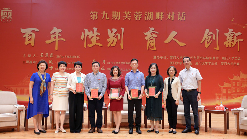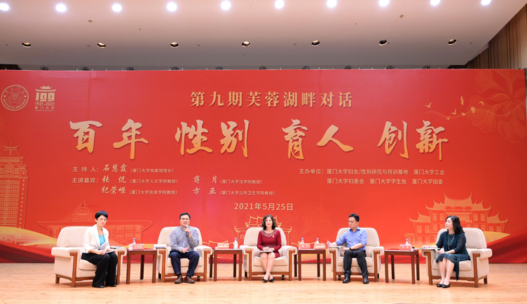 2021年,是中国共产党建党100周年,也是厦门大学建校100周年。为增进厦门大学师生了解百年变迁中的妇女发展历程,促进性别平等,5月25日晚7时,以“百年•性别•育人•创新”为主题的第九期芙蓉湖畔对话,在厦门大学科学艺术中心音乐厅如约举行,带领听众进入性别世界,回顾百年女性发展史,感受不同学科专家对性别的理解与魅力,探讨妇女未来发展面临的挑战和解决之策。本期对话由厦门大学妇女/性别研究与培训基地、校工会、校妇委会、校学生处、校团委联合举办。校党委常委、副校长、校工会主席、厦门大学妇女/性别研究与培训基地主任邓朝晖,原校党委副书记陈力文、赖虹凯,原副校长詹心丽等领导和师生约300余人参加了现场活动,同时有238人在线上收看了该场对话。