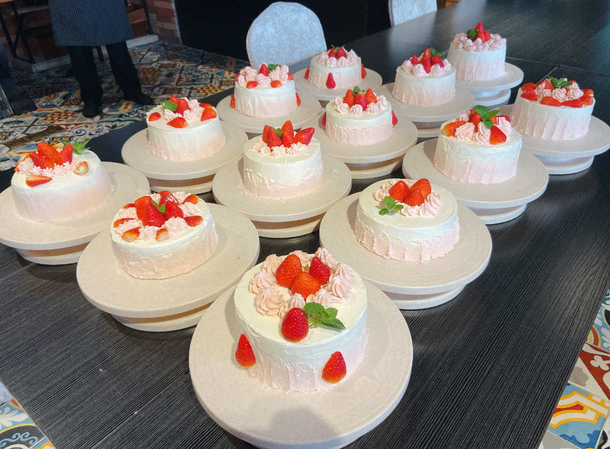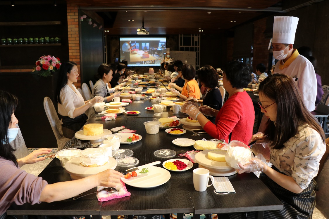 活动的主要内容为蛋糕DIY制作,学院邀请了专业的烘焙师现场讲解烘焙知识,示范裱花制作工艺。活动现场已经准备好了蛋糕制作工具及奶油、蛋糕胚等原材料,看到琳琅满目的材料,“女神”们都兴奋不已,跃跃欲试。在烘焙师的指导下,大家很快掌握了DIY制作的步骤和诀窍,日常忙碌于教学科研工作的“女神”们此时瞬间化身为“西点大师”,聚精会神地对待每一个制作步骤,发挥奇思妙想制作出各种各样的创意蛋糕。在鲜花与水果映衬中,在蛋糕的香气中感受DIY的乐趣和魅力。