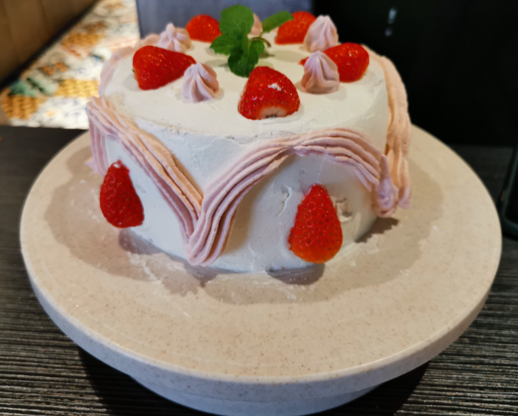 活动现场气氛热闹,处处洋溢着欢笑,“女神”们手下的蛋糕转盘,不停地变幻着模样,或奶油镶边,或水果点缀,或散花装饰……一时间,花样百出,精彩纷呈。香滑的奶油裹着松软的蛋糕,铺呈五颜六色的水果,散发出诱人的香甜气息。