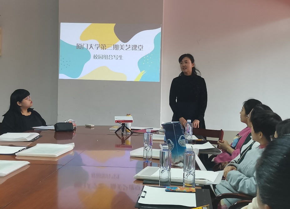 本期美艺课堂以 “迎百年校庆——遇见最美厦园”为主题,创作形式为校园实景组合写生,教授了绘画、写生的基本技法以及如何用彩铅、油画棒等绘画工具进行写生创作。