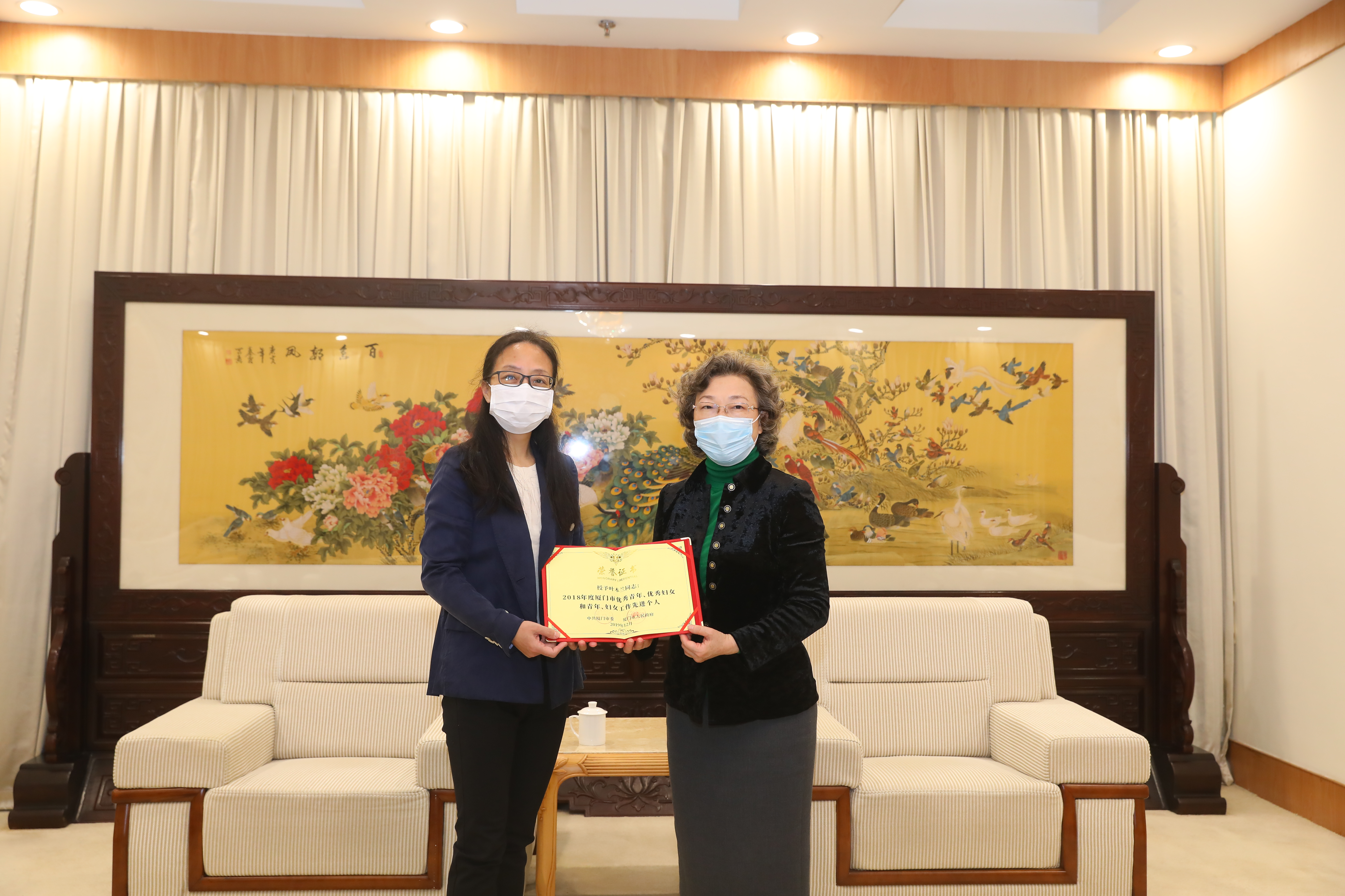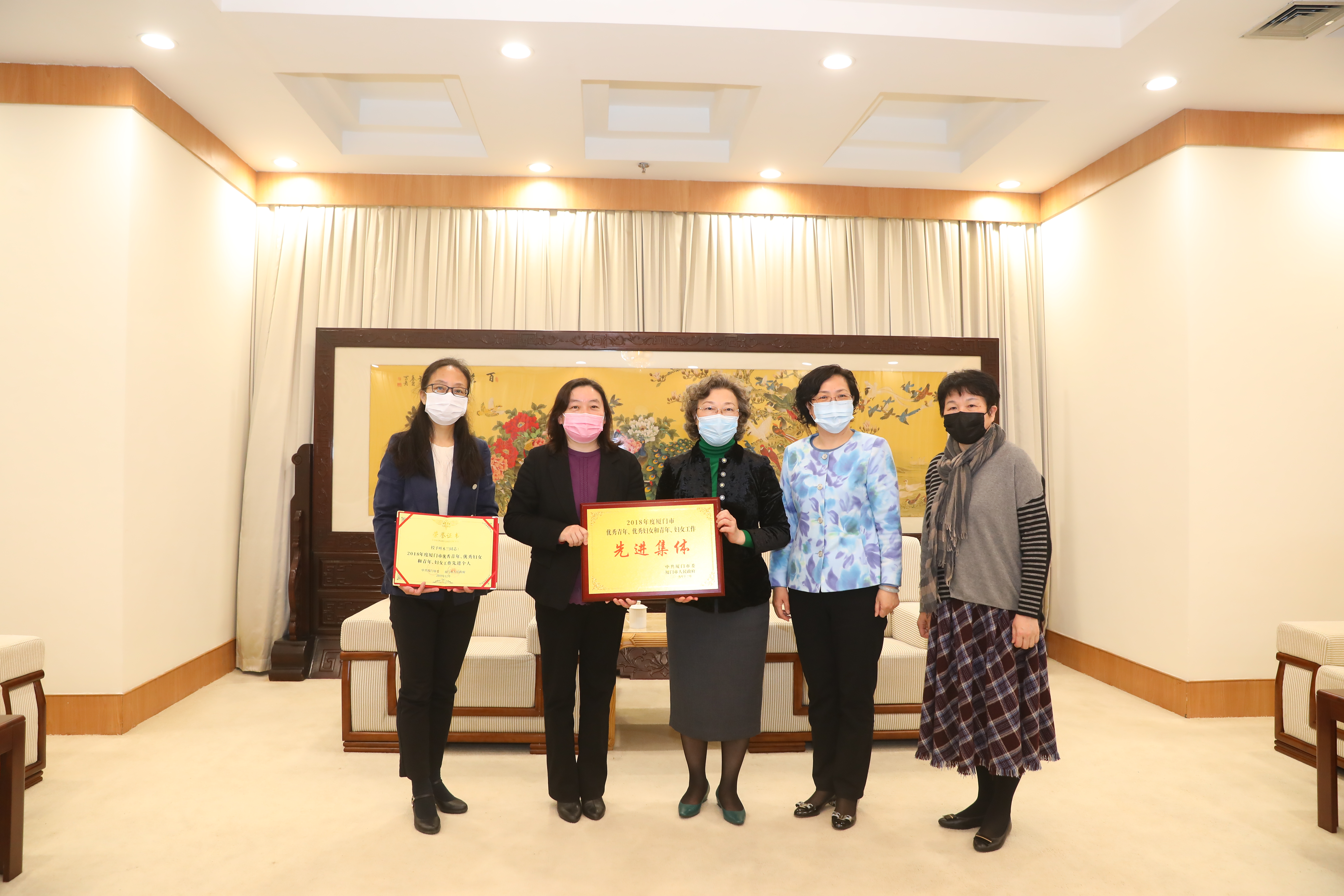 3月9日上午,在纪念“三八”国际劳动妇女节110周年之际,厦门市妇联党组书记、主席杨琪一行来校,为我校获市妇女工作先进集体和个人颁发奖牌、证书。厦门大学副校长邓朝晖出席颁奖仪式。