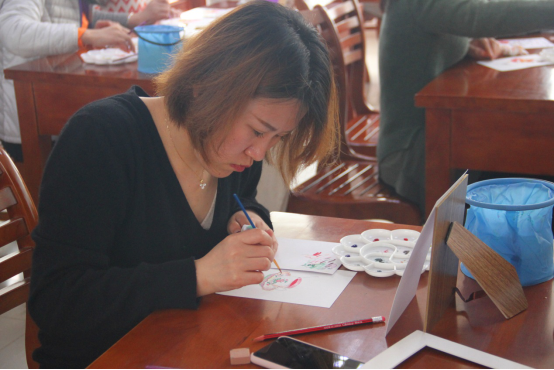 活动伊始,毕业于中央美术学院的青年艺术家吴昕洁用通俗易懂的语言介绍了水彩画的基本特征和零基础花卉绘画的注意事项,通过她的讲解,大家初步了解了如何使用水彩进行花卉创作,如何把握色彩组合,技法运用,以达到水彩鲜亮通透、清新动人的效果。随后,大家各自选取喜欢的图案,开始使用水彩进行花卉创作,以水为媒介,通过对水彩比例的把控,将优美的花卉姿态、可爱灵动的小动物或细致或奔放地展现出来,展现了南方基地女教职员工们在艺术方面的领悟和修养。此次活动利用午休时间,给大家带来了美的享受,大家纷纷表示,希望以后有更多机会参与此类活动。