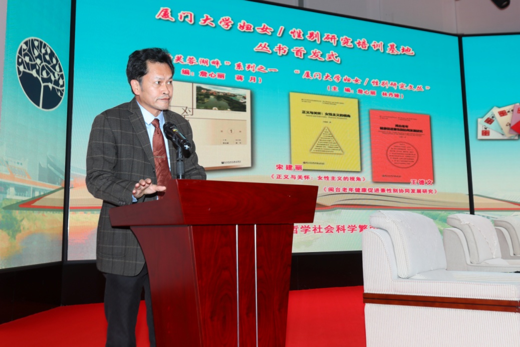 接着厦门大学出版社社长郑文礼介绍了文丛出版情况,厦大妇女/性别研究基地的出版物一直得到厦大出版社的大力支持,郑社长表示将一如既往全力配合基地出版这样高质量、高水平的科研成果,为两性平等进步做出应有的贡献。
