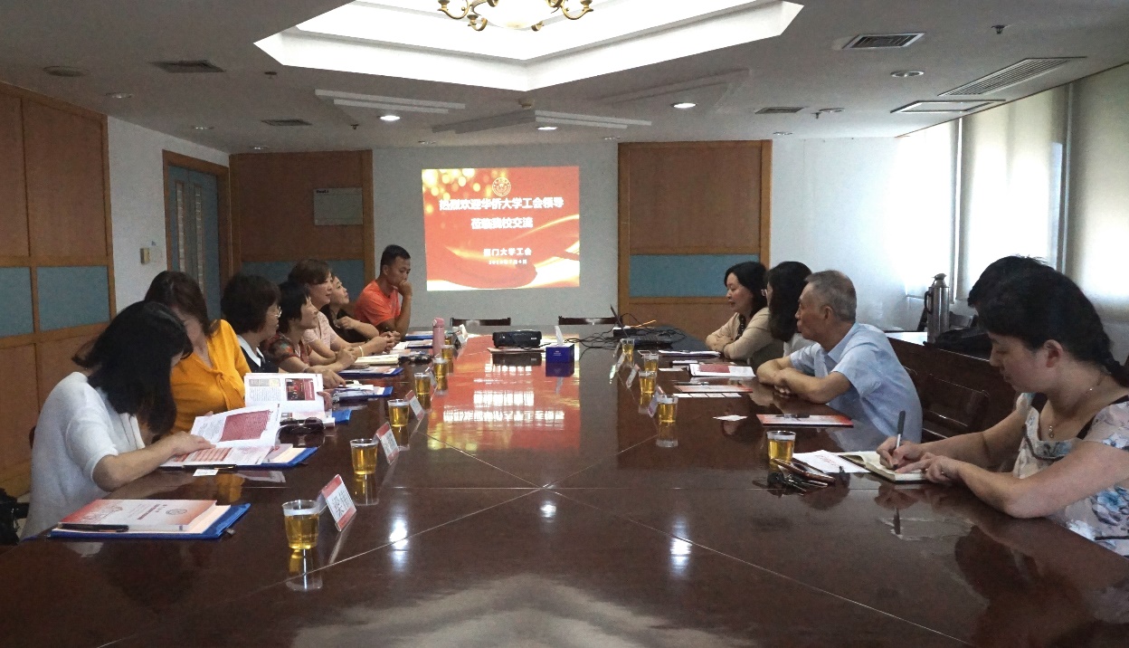 7月4日上午,华侨大学工会常务副主席洪若霞一行8人到我校,专程调研妇女、性别研究及女工工作。校工会常务副主席叶鹏飞,校工会副主席蒋月、秦红梅、李招淡以及办公室相关人员与到访客人进行了座谈。