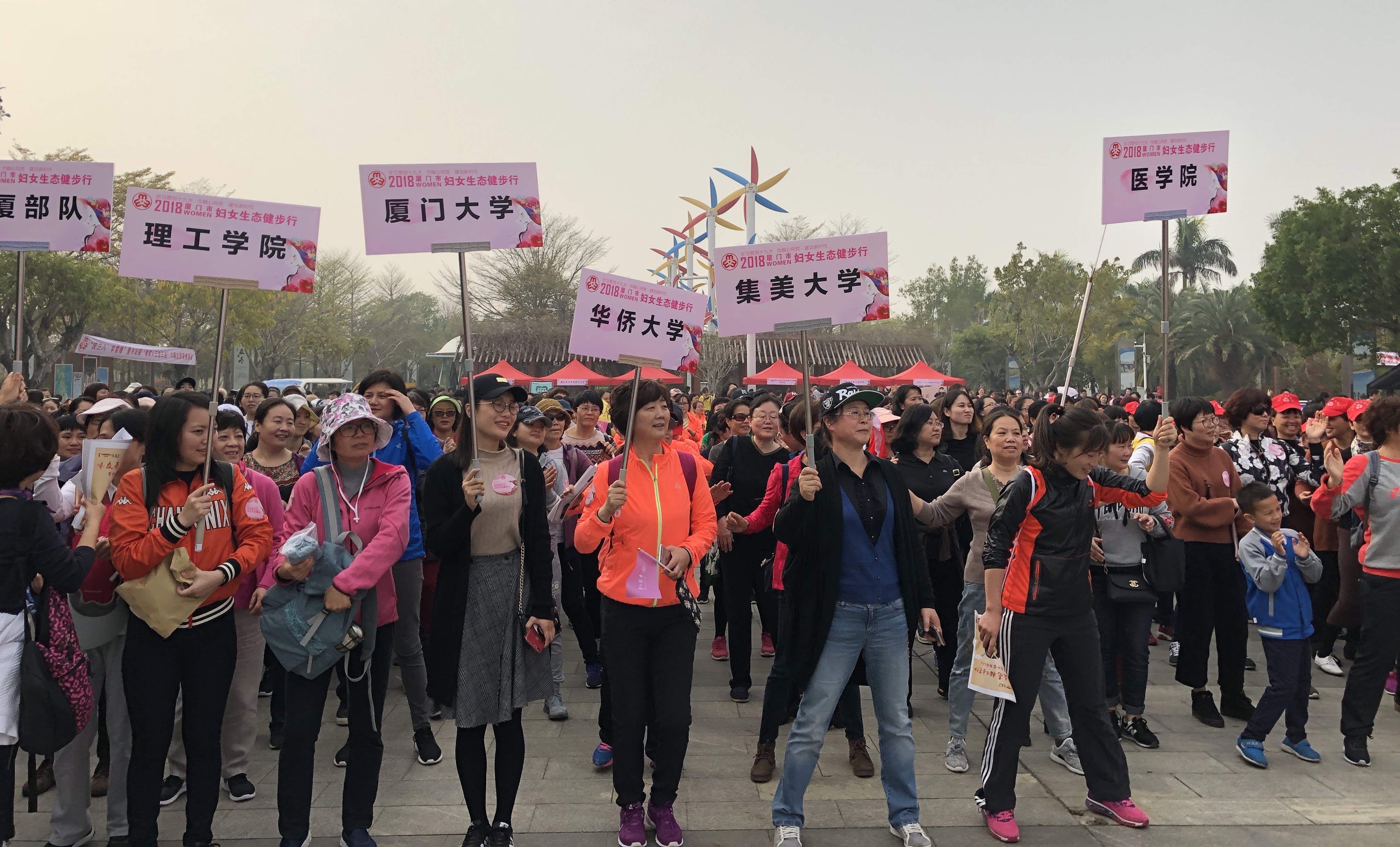 阳春三月,风和日丽。3月3日上午,厦门市各界妇女以“学习贯彻十九大·巾帼心向党·建功新时代”为主题,汇聚美丽的园博苑,出席由厦门市妇女联合会、集美区人民政府等单位主办的2018年厦门市妇女生态健步行。校妇委会主任蒋月教授带队,我校部分女教职工和女学生快乐参与其中,以实际行动践行快乐工作、健康生活,向着新时代健步前进。师生们来到绿树成荫的活动现场,在花团锦簇的美景中很是舒爽。厦门各界妇女代表2000余人满满当当的队伍有序地排列在广场中,欢乐动感的健身操热身表演带动大家舒展身体,嗨起来。市妇联主席吴亚汝致词,市政府副市长张毅恭为活动鸣枪发令,宣布开始健步行。此次活动全程约5公里。走在春天的阳光里,春色撩人。姐妹们以健康别样的方式迎接和纪念“三八”劳动妇女节108年周年。