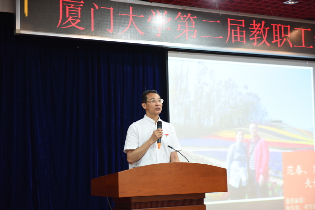首先,赖虹凯代表学校党政领导向全体银婚伉俪表示诚挚的祝贺!他指出,本届的银婚纪念活动正是贯彻习近平总书记关于家庭建设、家风建设的系列重要讲话精神,寻找我校“最美家庭”系列活动的首场。希望通过本次活动,以及即将开展“好家风好家训”征集与展示活动、家庭教育讲座、家庭朗读会等,宣扬家庭美德、引导广大教职工特别是党员领导干部重视家庭、家风和家教。他希望银婚夫妇们同广大教职工一起,为推动家庭文明建设,营造温馨美好的校园氛围,共同创建美好厦大、美好生活贡献力量。