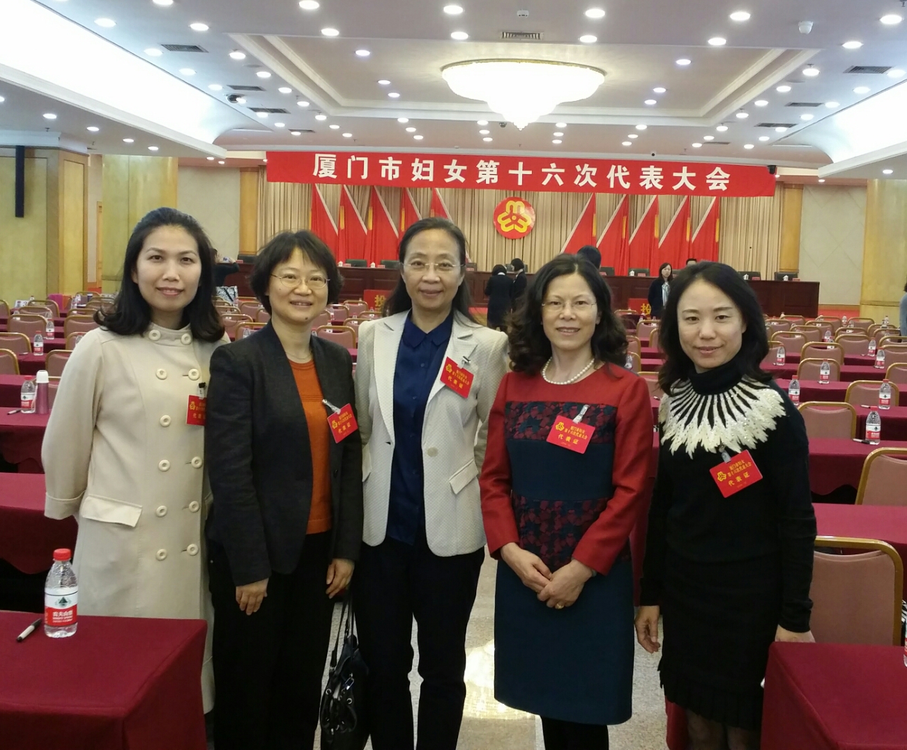 厦门市妇女第十六次代表大会于12月27日、28日在厦门会堂举行,456名妇女代表齐聚一堂共商妇女未来五年发展大计。省市领导裴金佳等出席会议并讲话。福建省妇联党组书记、主席吴洪芹到会祝贺并致辞。厦门大学法学院教授兼校妇委会主任蒋月、医学院教授兼校妇委会副主任叶本兰、生物学系教授颜晓梅、人文学院党委副书记兼校妇委会副主任王瑛慧、管理学院副教授何燕珍和艺术学院助教张乔希等女教师作为代表全程出席了会议。