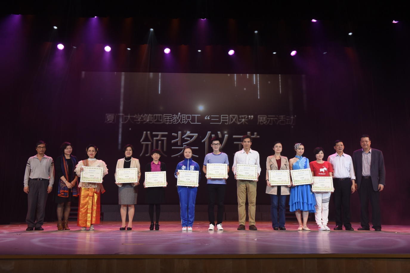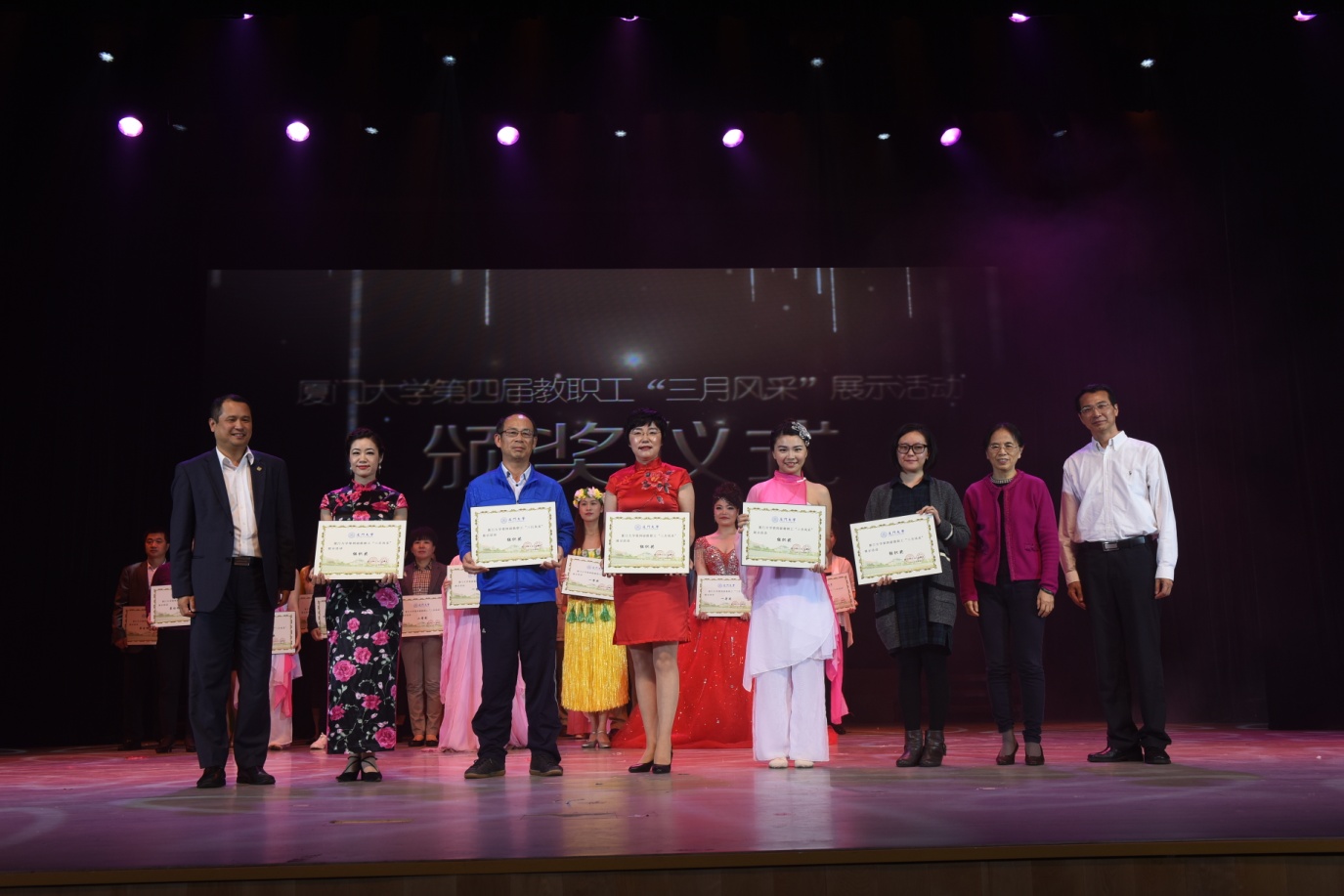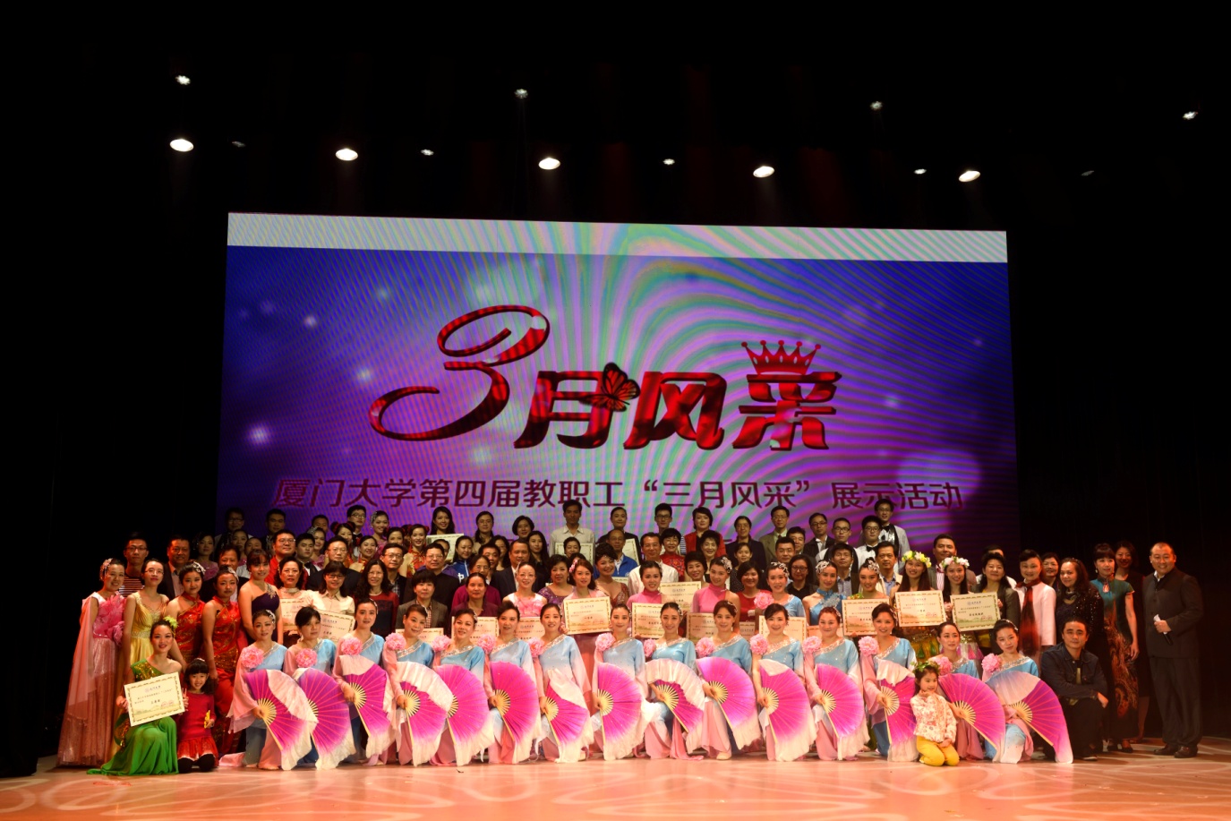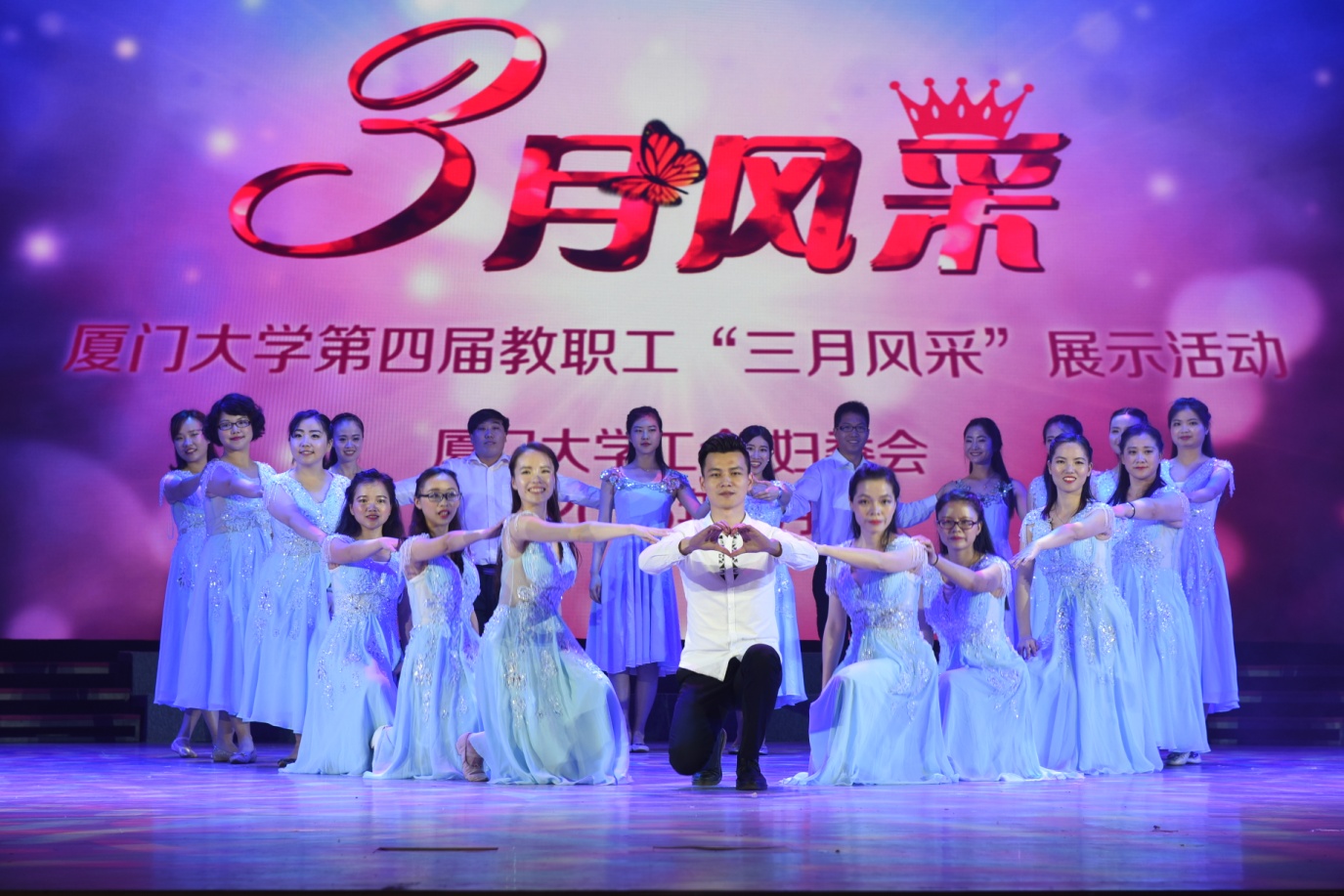 4月16日晚7时,由校工会、校妇委会联合主办的主题为“春暖厦大,巾帼芳华”的厦门大学第四届教职工“三月风采”展示活动决赛在建南大会堂顺利举行。我校党委副书记、纪委书记、校工会主席赖虹凯,党委副书记林东伟,关工委主任陈力文,组织部部长孙理,宣传部部长徐进功,学生处处长夏侯建兵,离退休处处长郑建华,校工会常务副主席宋毅,校妇委会主任蒋月,校团委书记陈怀锋等有关领导和有关单位党委书记、院长、工会主席和妇委会主任,师生代表观看了演出。
