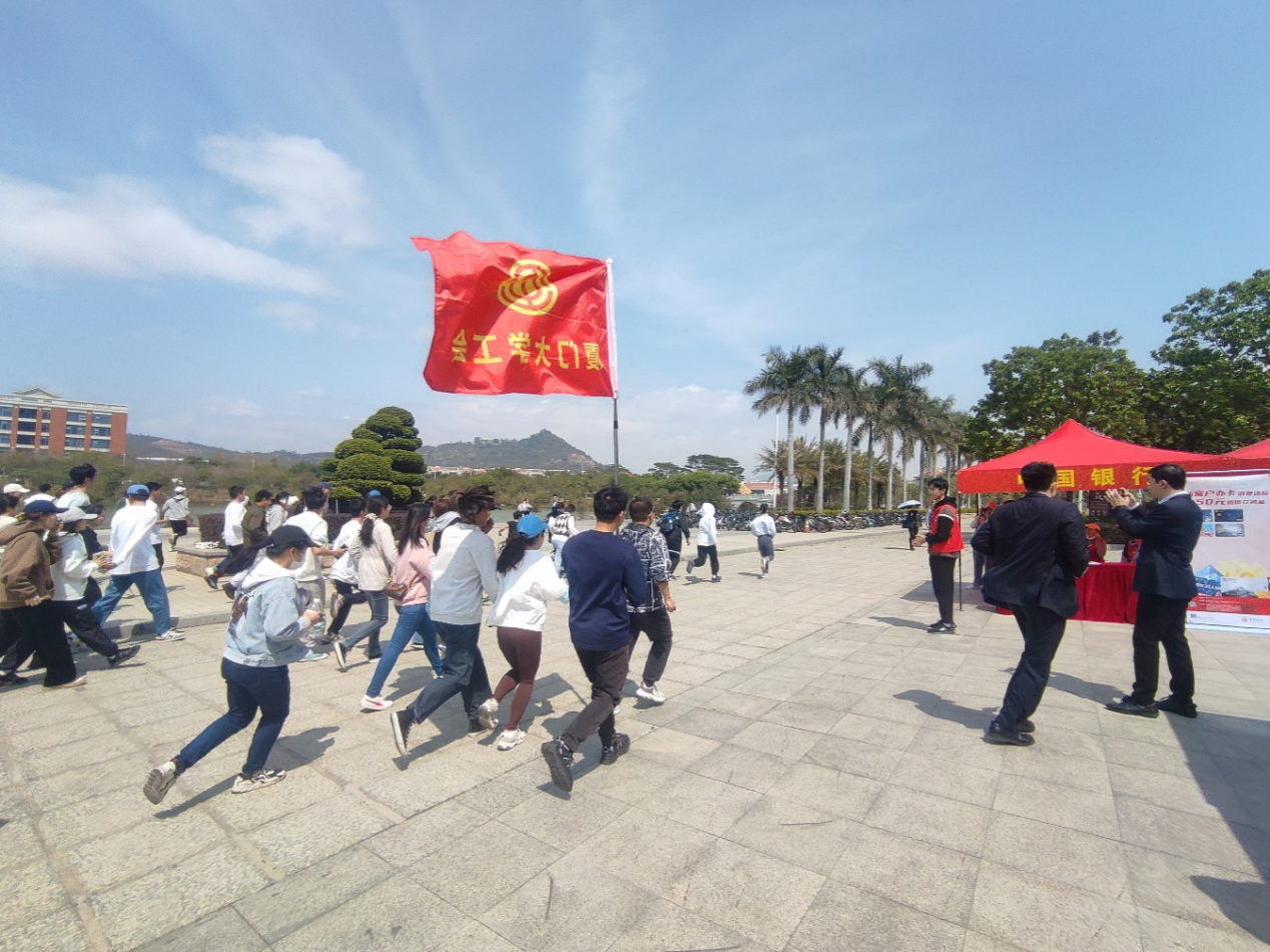 校党委常委、副校长、工会主席邓朝晖,学生工作部(处)长李峰,翔安校区管委会副主任马龙,校工会常务副主席叶鹏飞,中国银行厦门分行副行长纪志强及400多名师生齐聚芙蓉湖畔。