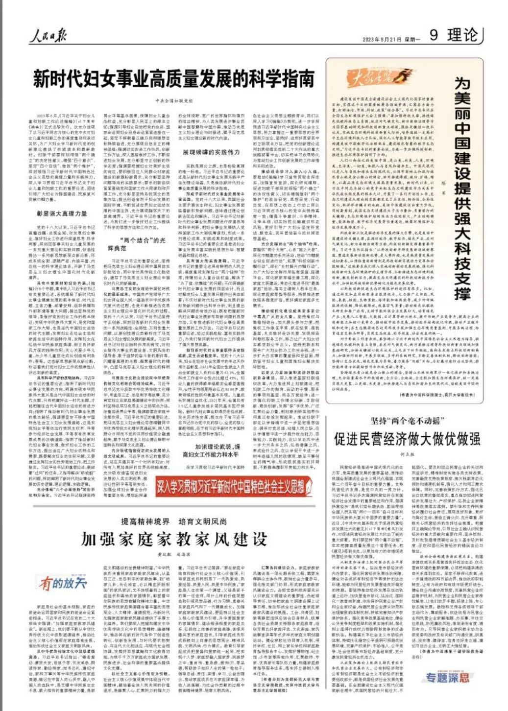 中共全国妇联党组在2023年8月21日《人民日报》上发表文章《新时代妇女事业高质量发展的科学指南》。