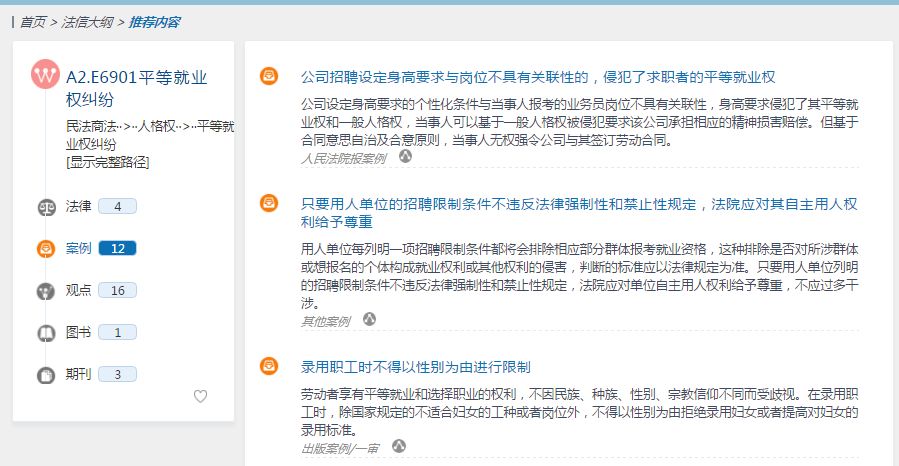 一、在第一部分“人格权纠纷”的第三级案由“9 、一般人格权纠纷”项下增加一类第四级案由“ 1、平等就业权纠纷”;