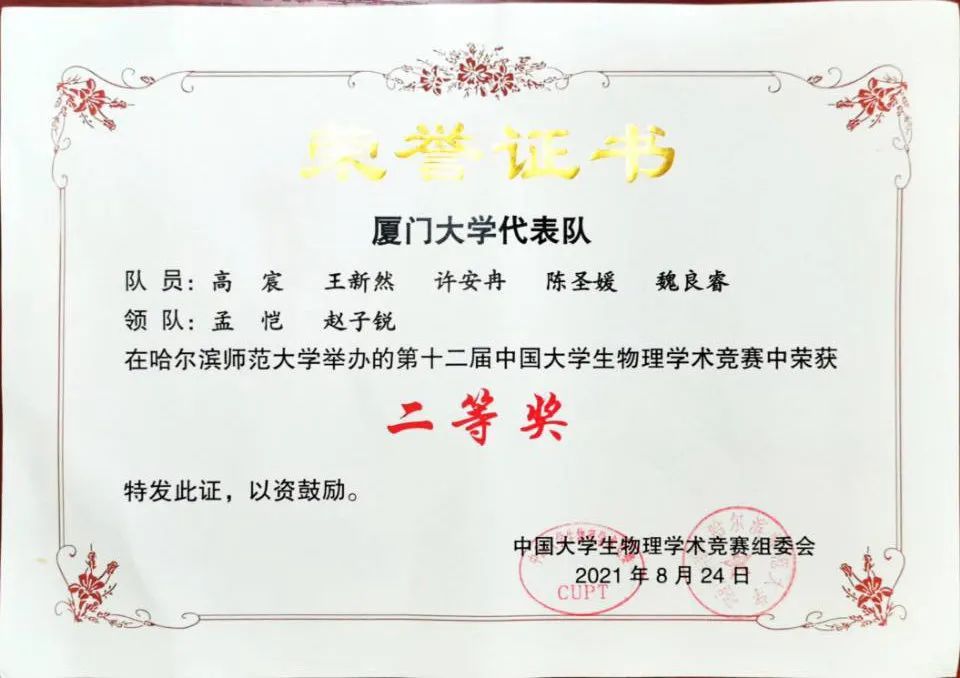 而后,她在学习的道路上继续探索,先后获得了全国大学生数学建模竞赛非专业组的全国一等奖,以及厦门大学物理竞赛的个人二等奖。
