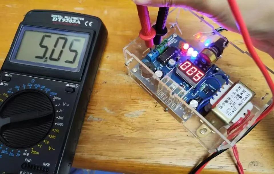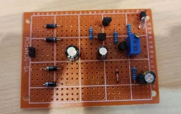 左图为郭雨萱焊接的电路板,右图为交流变直流可调稳压模块